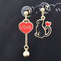 Παιδικά σκουλαρίκια σχέδιο με μια μαύρη γάτα και μια κόκκινη καρδιά 83061